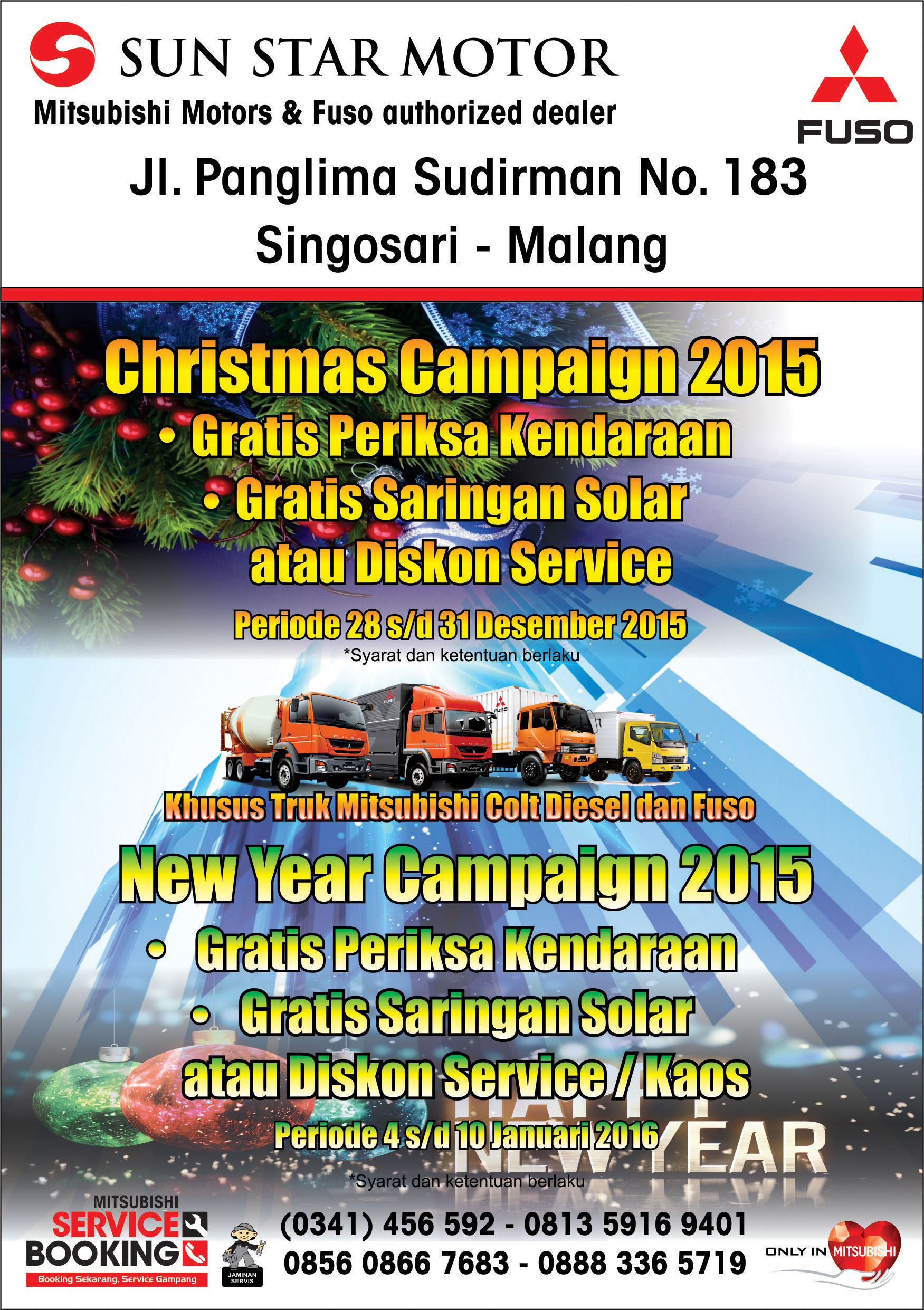 untuk kendaraan FUSO & COLT DIESEL mulai service tanggal 28-31 Des 2015ย ย &ย 4-8 Jan 2016.
